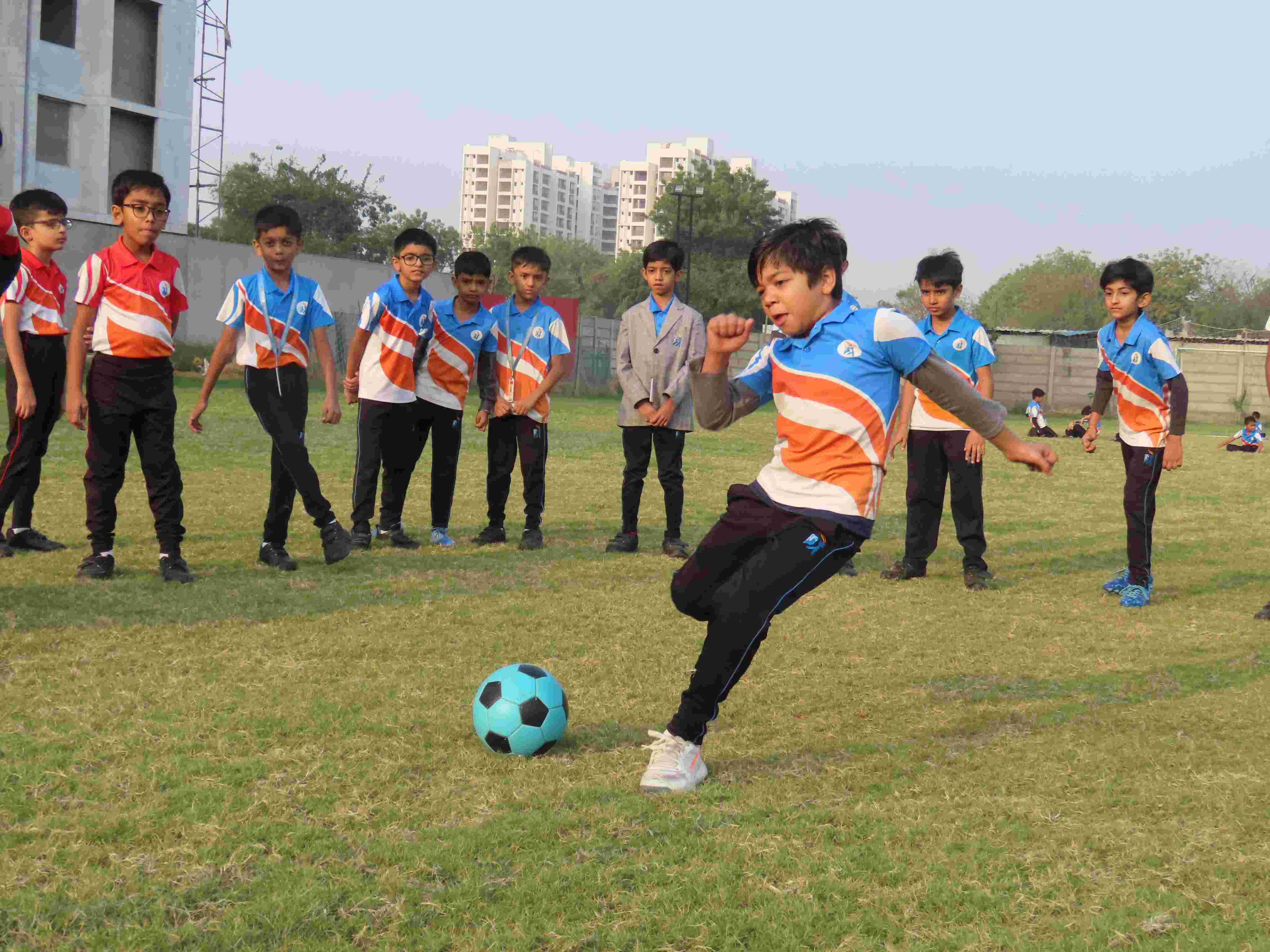 The campus features a cricket pitch, basketball court, football turf, volleyball court, lawn tennis court, and a skating rink, providing opportunities for students to explore and excel in multiple sports disciplines.